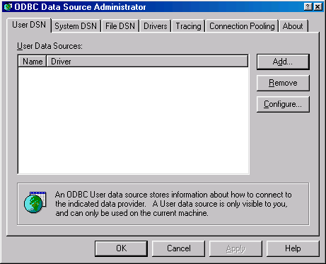 Within MS-Windows, choose Start -> Settings -> Control Panel and double-click the ODBC Data Sources icon