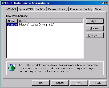 You should now see the ODBC Data Source you have created listed in the ODBC Data Source Administrator: